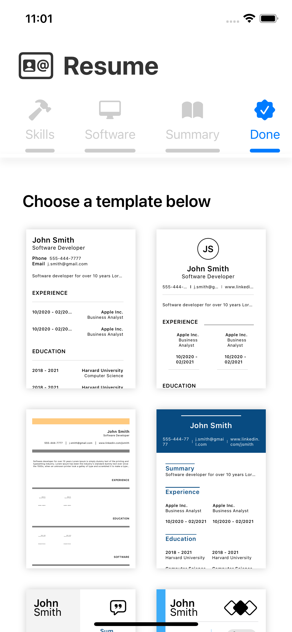 Resume Builder - Job Templates